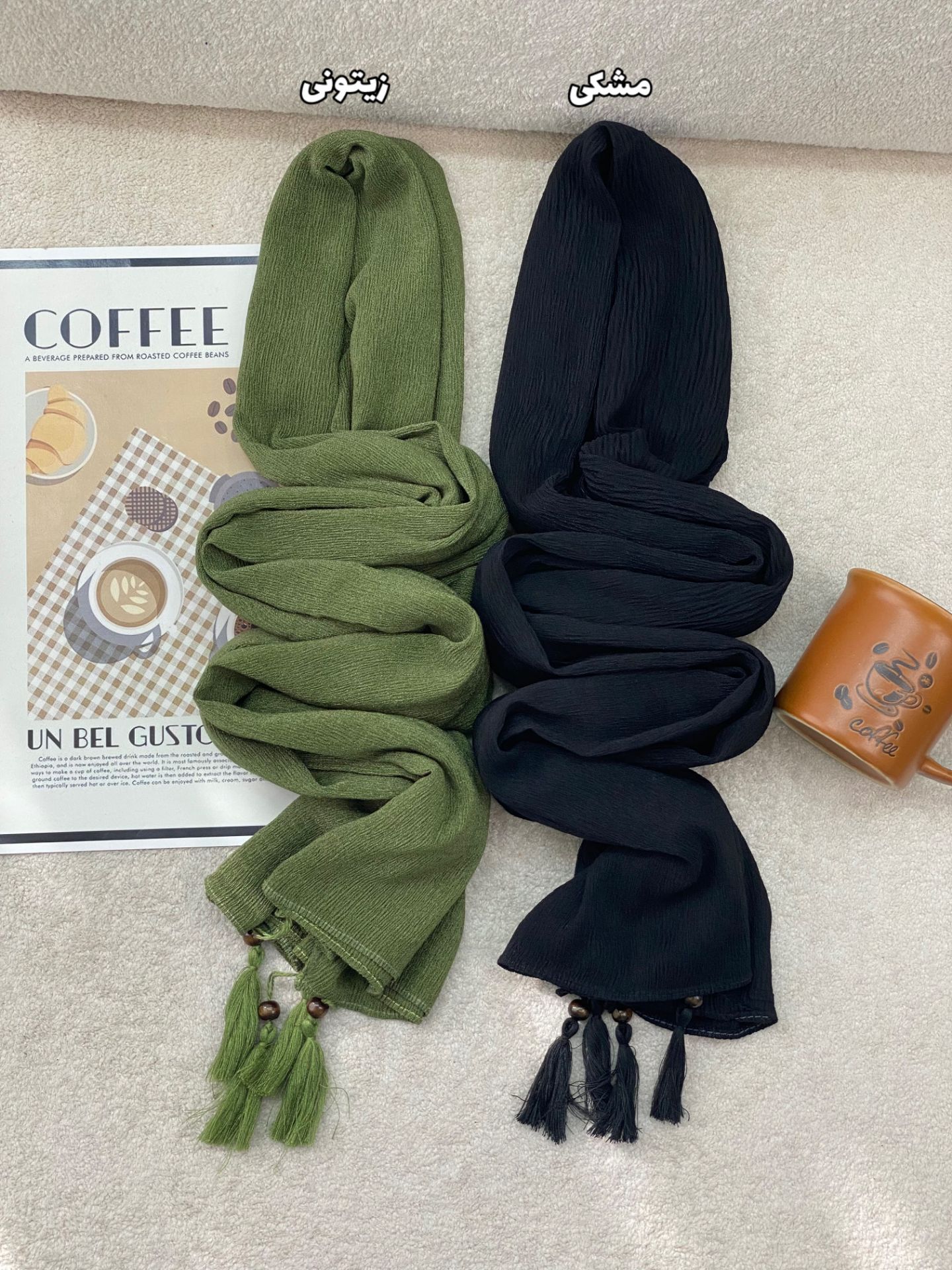 شال پلیسه نخی منگوله چوبی